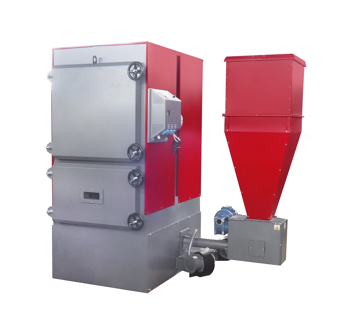 изготовлен из высококачественной стали и обеспечивает высокую эффективность сгорания благодаря трехрядному теплообменнику, что также значительно экономит энергию. Теплообменник изготовлен из дымовых бесшовных стальных труб, погруженных в воду и расположенных в верхней части камеры сгорания, которая, в свою очередь, снабжена нисходящим шнеком, что обеспечивает защиту системы от возвратного пламени естественным образом и идеально подходит для всех видов размельчённого топлива. Электронное управление осуществляется цифровой системой, способной регулировать все параметры, необходимые для оптимальной работы котла.